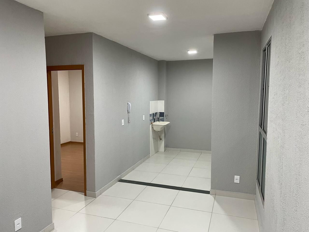 Instalado piso novo de porcelanato (INCEPA) na sala, cozinha e banheiro.