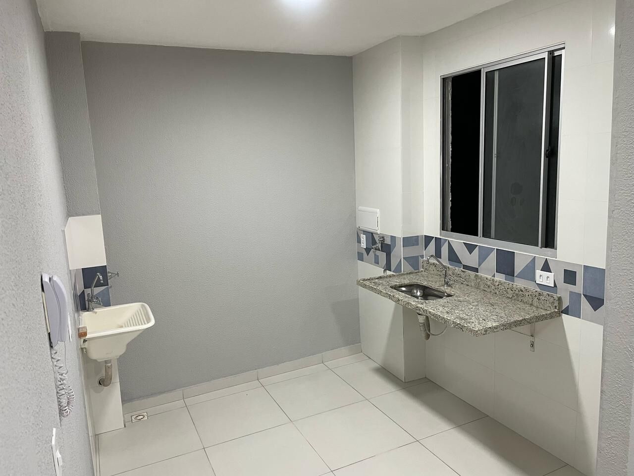 Instaladas pias de granito cor branco Dallas na cozinha e no banheiro.