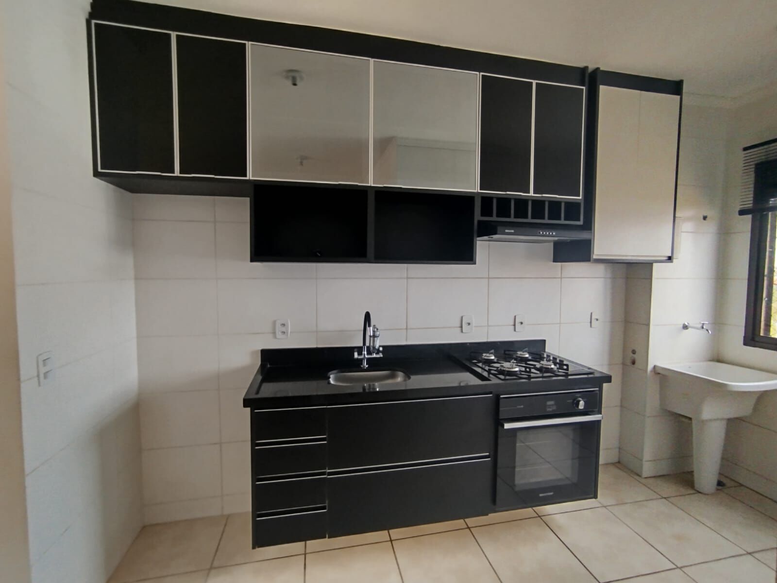 ✅Cozinha americana com armários planejados, cooktop e forno.