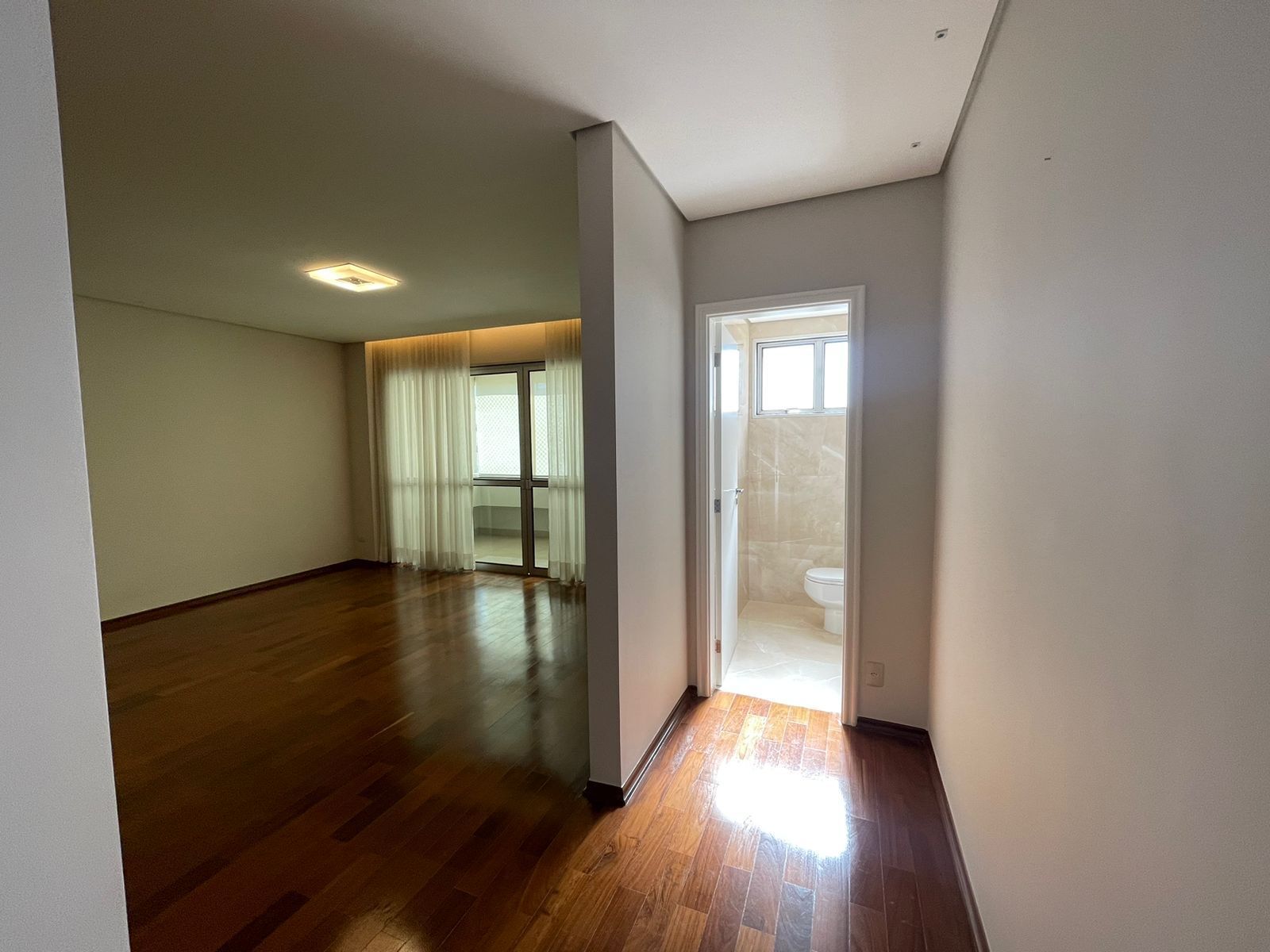 ✅Sala 03 ambientes com piso restaurado, cortineiro e porta de grande vão que permite muita luz natural e acesso a sacada com vista.