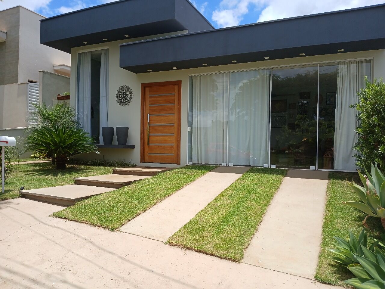 ➡️Fachada moderna com volumetria na platibanda e lindo paisagismo 🌴