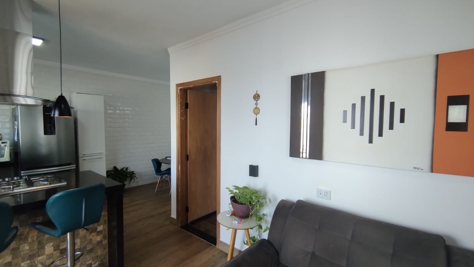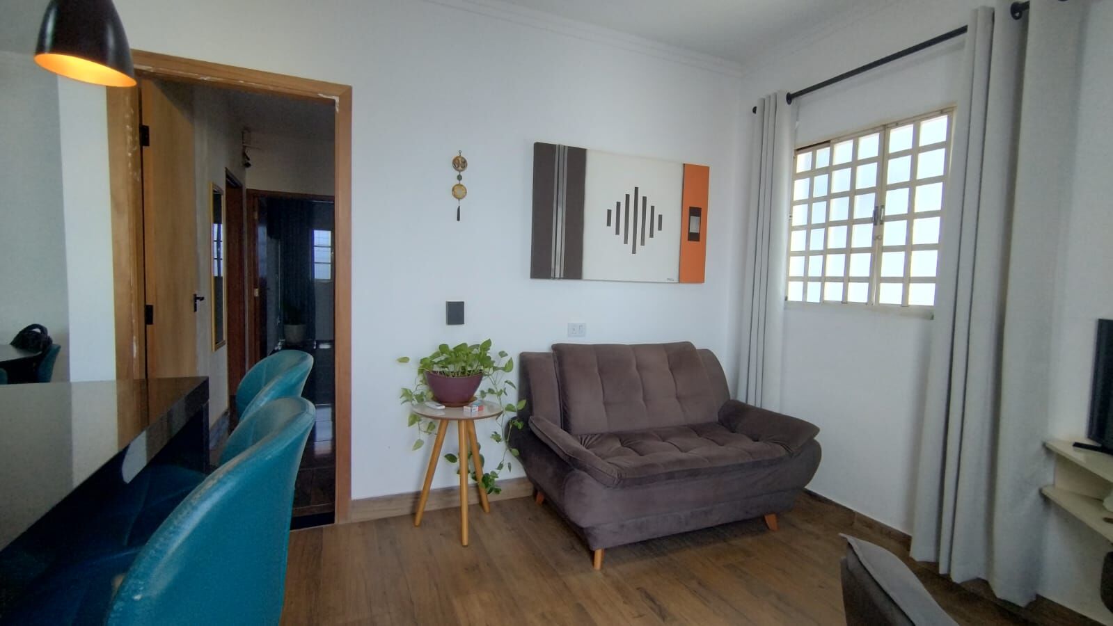 Sala charmosa dois ambientes, com cortineiro.