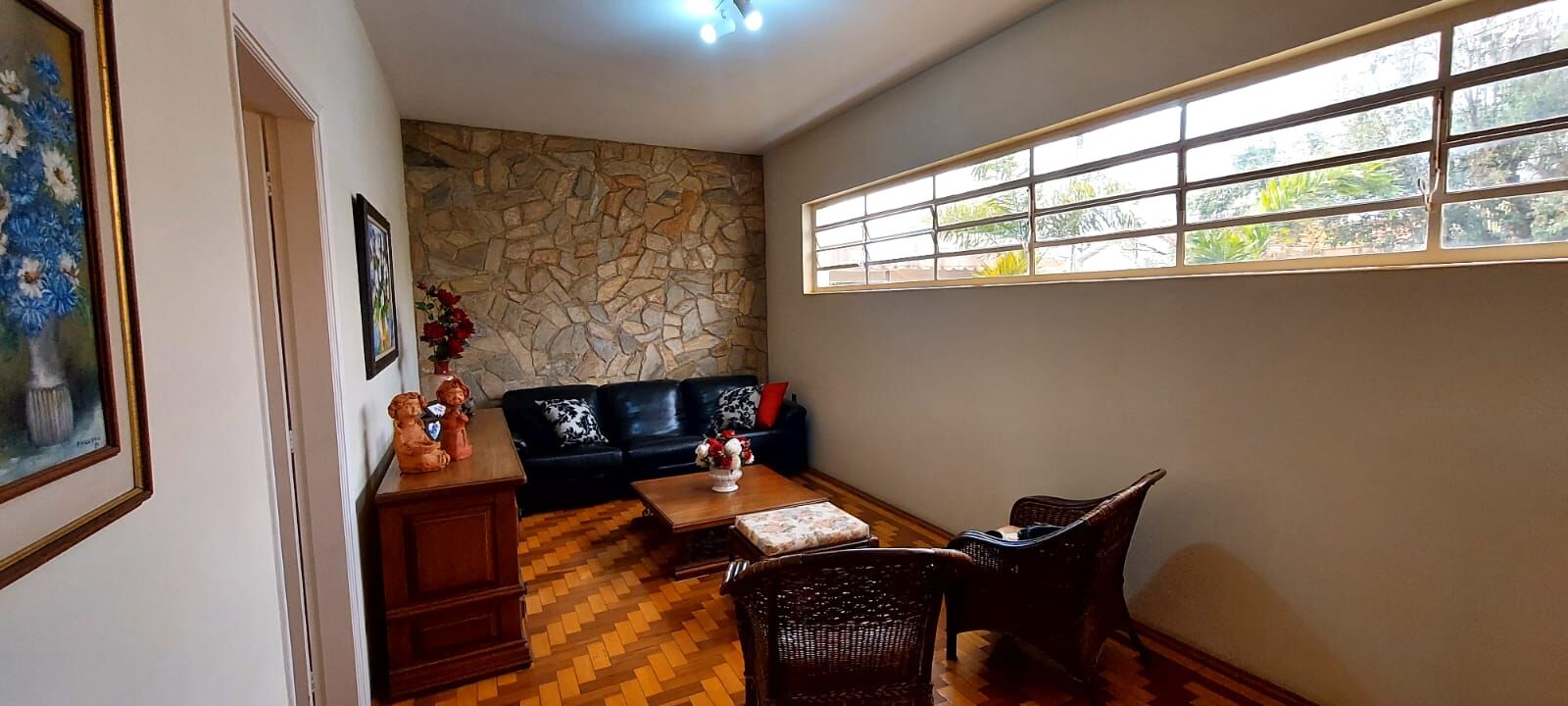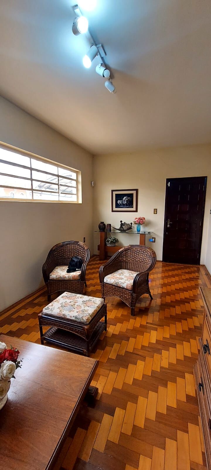 Espaço social com piso em taco com ótimo estado de conservação.