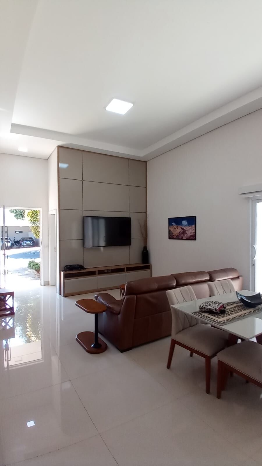 ✅Sala dois ambientes com pé direito alto, painel amplo para TV, rack suspenso, porta de grande vão permitindo muita luz natural, forro de gesso acartonado com iluminação embutida, planejados na sala de jantar, ar-condicionado e fechadura eletrônica na porta pivotante.