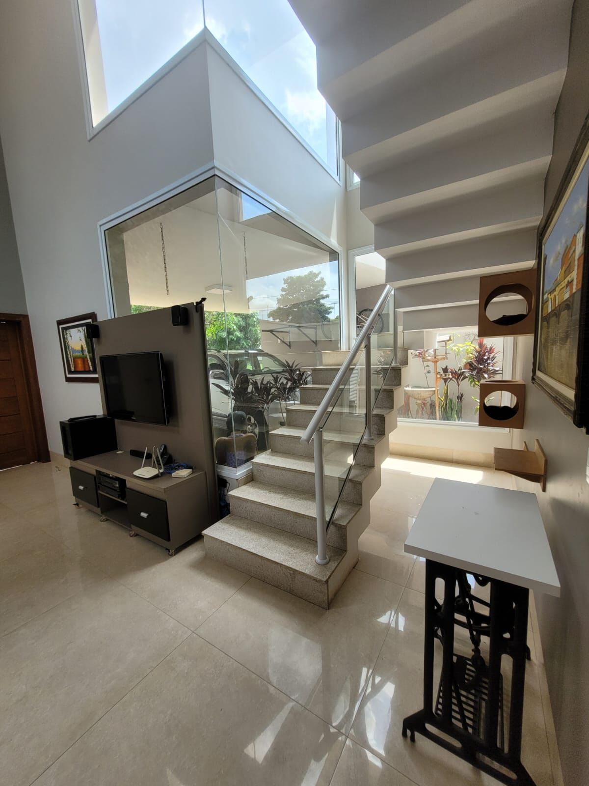 ✅Sala ampla dois ambientes, pé direito duplo, pele de vidro permitindo muita luz natural.