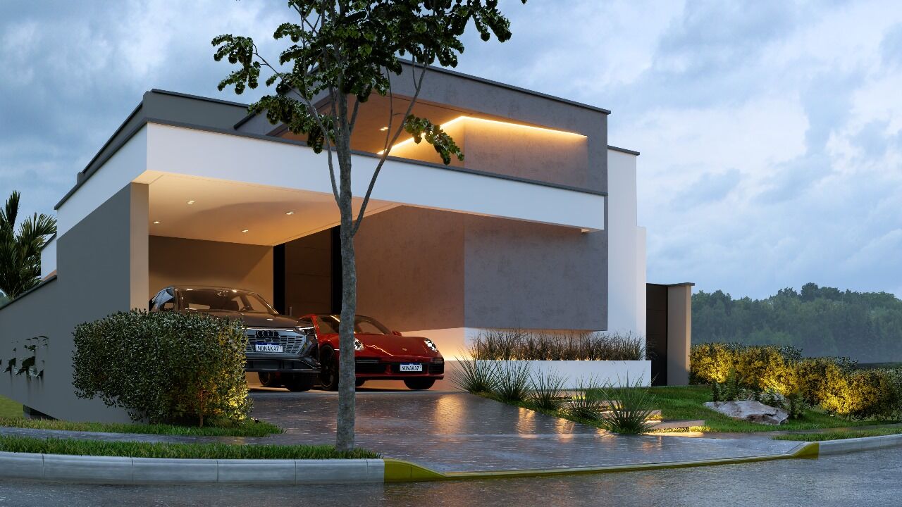 ✨Fachada moderna com volumetria na platibanda, projeto luminotécnico e Paisagismo🌴