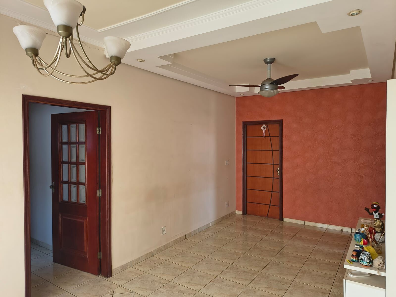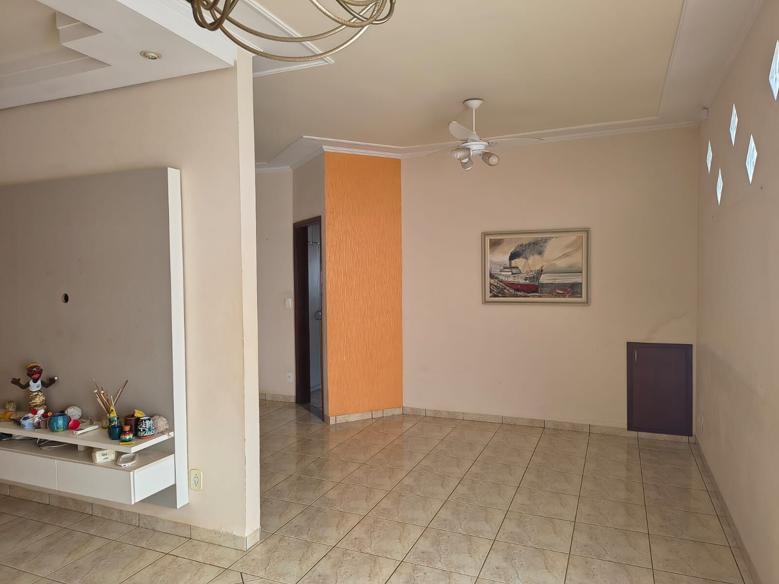 ✅Sala ampla 02 ambientes com painel de TV e rack suspenso, sanca em gesso com iluminação embutida, cortineiro, ventilador de teto, ar-condicionado e porta de grande vão permitindo muita luz natural.