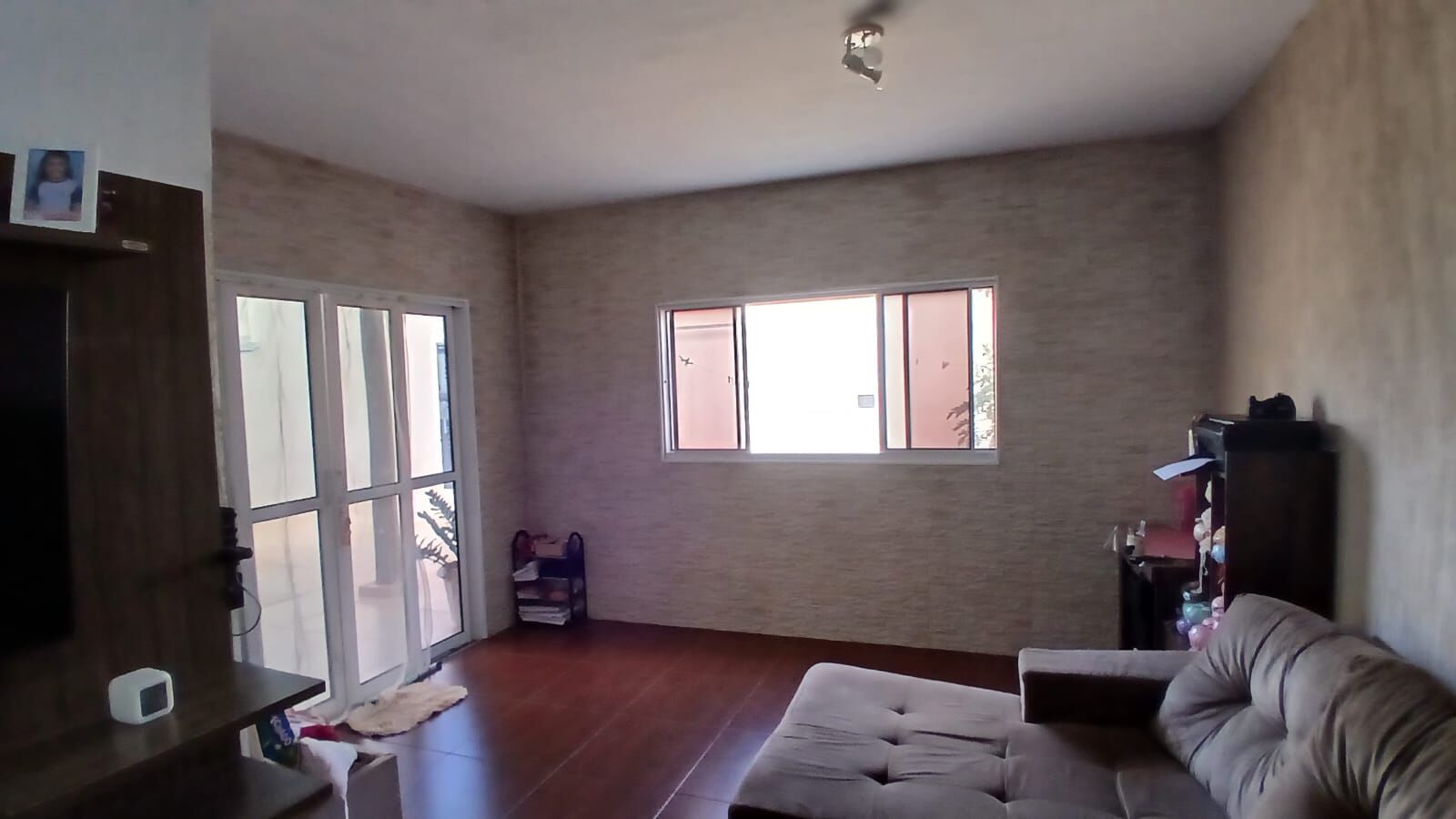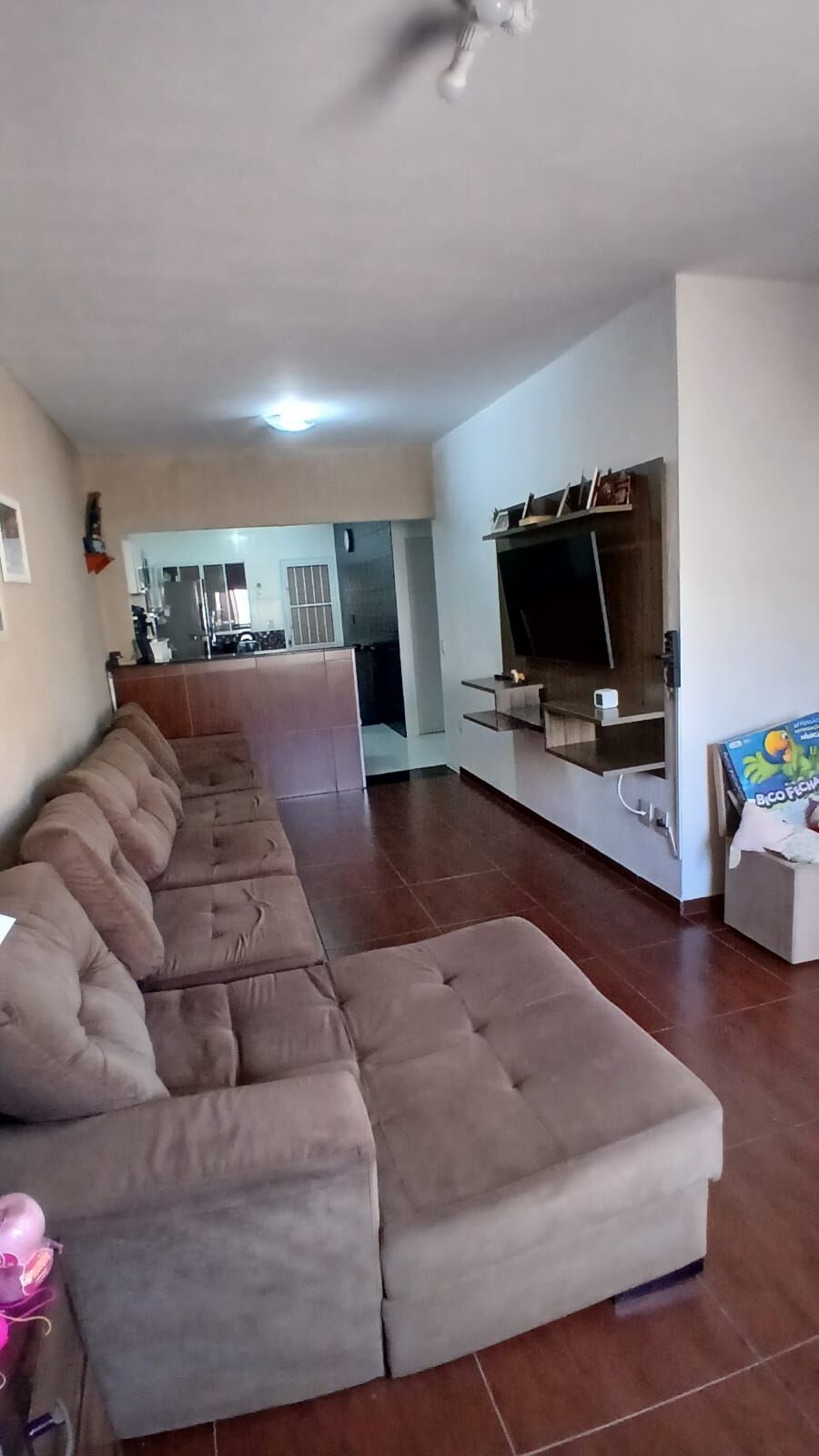✅Sala ampla dois ambientes com painel de TV e rack suspenso, porta de grande vão permitindo muita luz natural.
