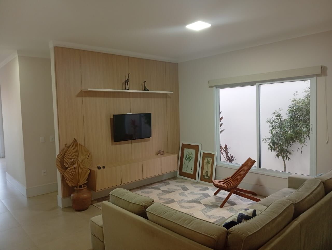 ✅Sala ampla 02 ambientes, com generoso painel de TV e rack suspenso.