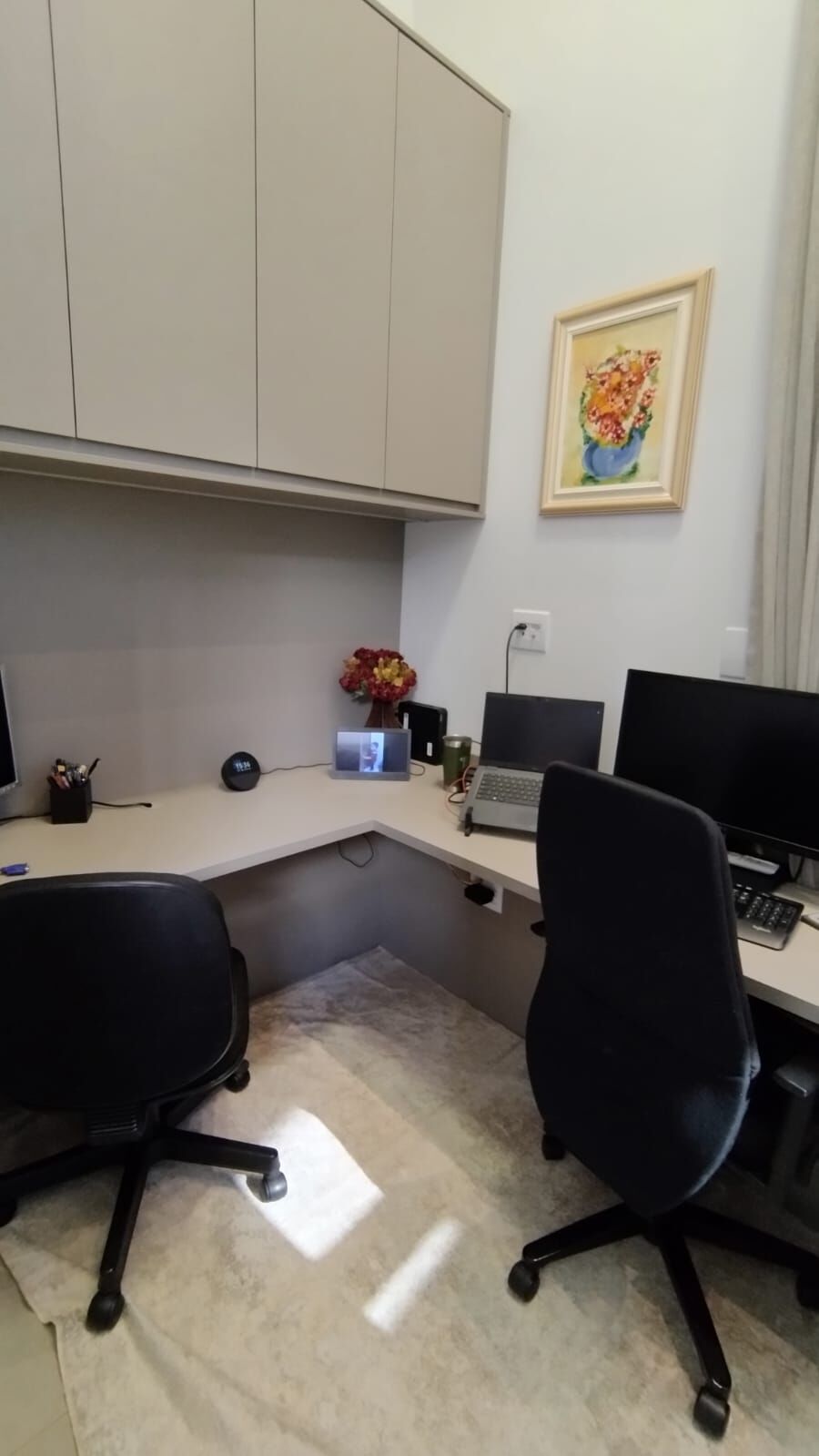 ✅Escritório com completa estação de trabalho planejada e cortinas.